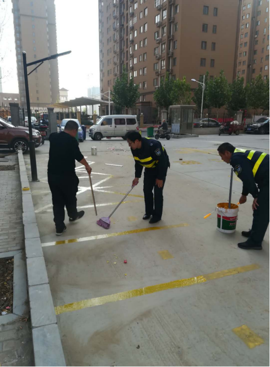 10月19日上午7點30分,中隊長鄧紅軍帶領(lǐng)小區(qū)保安班長王俊峰、隊員高力學(xué)無償為小區(qū)劃好停車位、消防通道、行人斑馬線。劃好的線條使整個小區(qū)內(nèi)整潔美觀,既保證了居民車輛的正常停放,也保證了消防車輛能夠正常出警。業(yè)主看到保安隊員能夠設(shè)身處地為業(yè)主的安全著想,都為保安隊員職業(yè)責(zé)任感點贊。