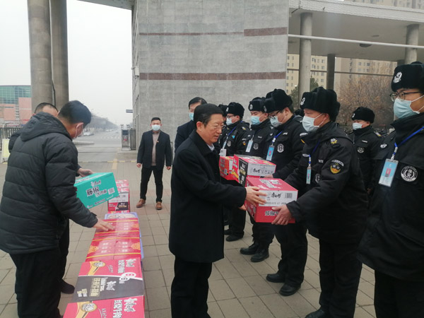 1月15日上午,安陽(yáng)工學(xué)院校長(zhǎng)景國(guó)勛一行,帶著方便面、蘋果、橘子等慰問(wèn)品,來(lái)到人防三大隊(duì)派駐工學(xué)院保安班駐地慰問(wèn)堅(jiān)守在一線執(zhí)勤的隊(duì)員。人防三大隊(duì)領(lǐng)導(dǎo)王武魁、聶紹軍、閆永勝參加了慰問(wèn)活動(dòng)。